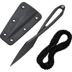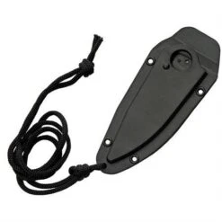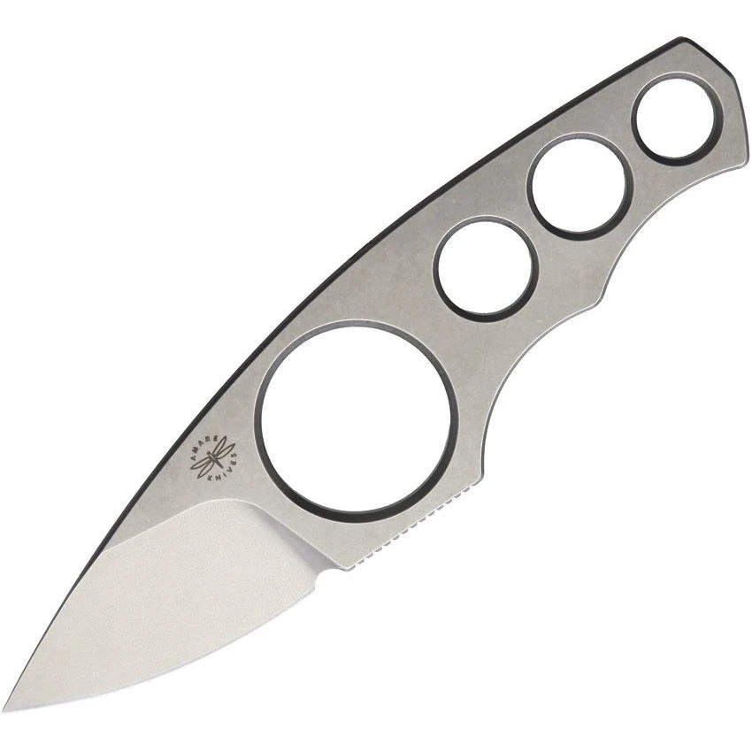 Model – AMR201903. A-MAX Fixed Blade SW. A-MAX Fixed Blade. 5.25 inch (13.34cm) overall. 1.88 inch (4.78cm) stonewash finish 14C28N Sandvik stainless blade. One-piece construction. Finger ring. Machined hole cutouts. Ball chain lanyard. Black Kydex sheath. Boxed.