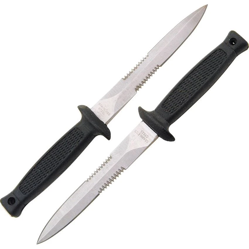 - Includes two 7″ overall daggers with 3 7/8″ stainless double edged blades