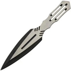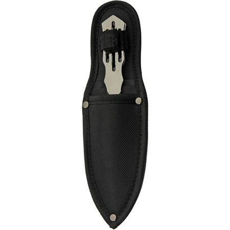 Model – CN211535. China Made 211535 – Three Piece Thrower Set. 8″ (20.32cm) overall. 3.75″ (9.53cm) two-tone finish stainless blade. One-piece construction. Black nylon belt sheath. Boxed. Made in China.