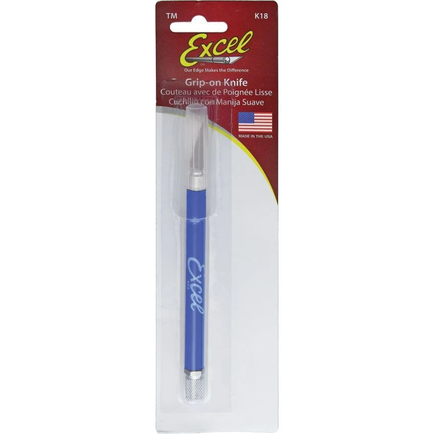 Model – EXB16018. K18 Grip-On Knife. No 11 blade. Four jaw aluminum chuck for secure blade positioning. Clear safety cap. Color will vary. Boxed. Proudly made here in the USA.