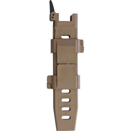 Model – EX0478DW. Requiem Fixed Blade Desert. 9.25 inch overall. 4.5 inch stonewash finish false edge Bohler N690 stainless stiletto style blade. Desert tan Forprene handle. Tan nylon MOLLE compatible belt sheath. Boxed.