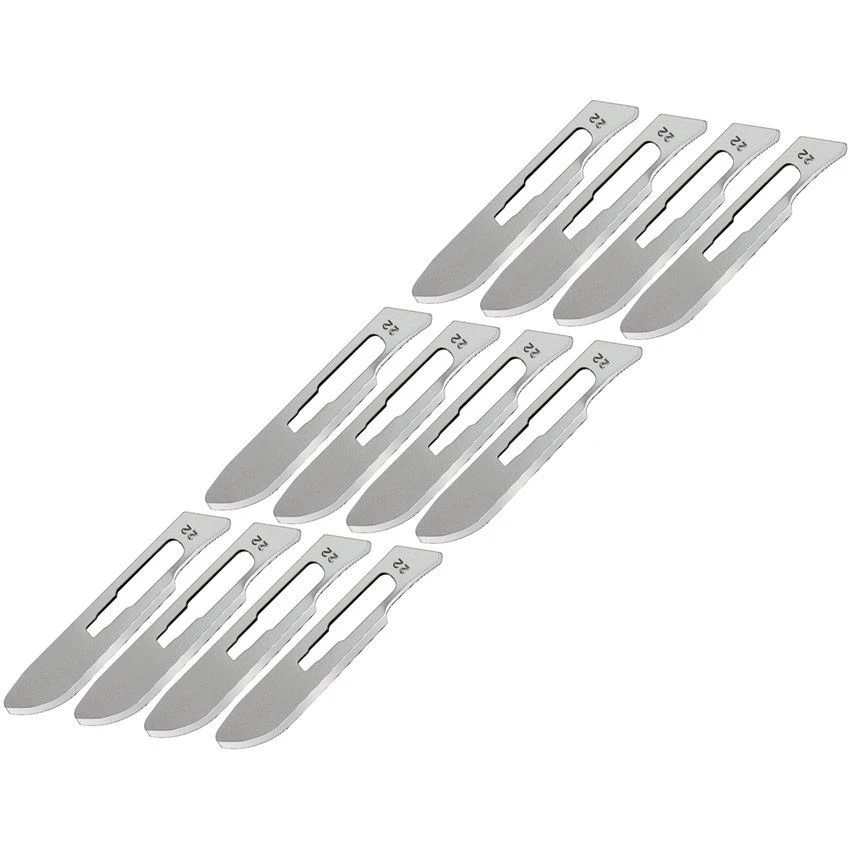 Model – HV22XTDZ. Quik-Change s Fixed Blade Knife. 2.38 inch blunt tip carbon steel replacement blades. 50% thicker than standard #22 blades. Individually foil wrapped for safety. Fits all Piranta knives except the Tracer-22. Comes with clear storage tube. Perfect for caping and fine detail. Contains one dozen blades. Hang packaged. Made in India.