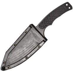 Model/Part Number – KG0001A1. Kansept Hex Neck Knife SW. 5.63″ (14.3cm) overall. 2″ (5.08cm) stonewash finish 14C28N Sandvik stainless blade. One-piece construction. Finger ring. Ball chain lanyard. Black Kydex neck sheath. Boxed. Made in China.