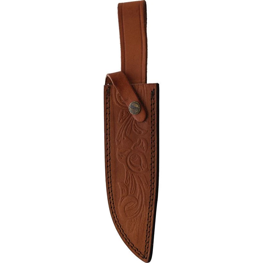 Model/Part Number – MR624. Marbles Outdoors Knives Bowie. 12.5″ (31.75cm) overall. 7.5″ (19.05cm) satin finish sawback stainless blade. Brown wood handle. Nickel silver guard and pommel. Brown leather belt sheath. Boxed. Made in Pakistan.